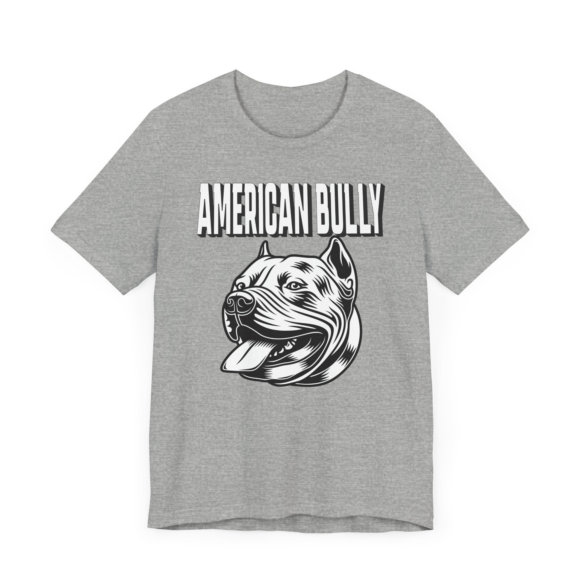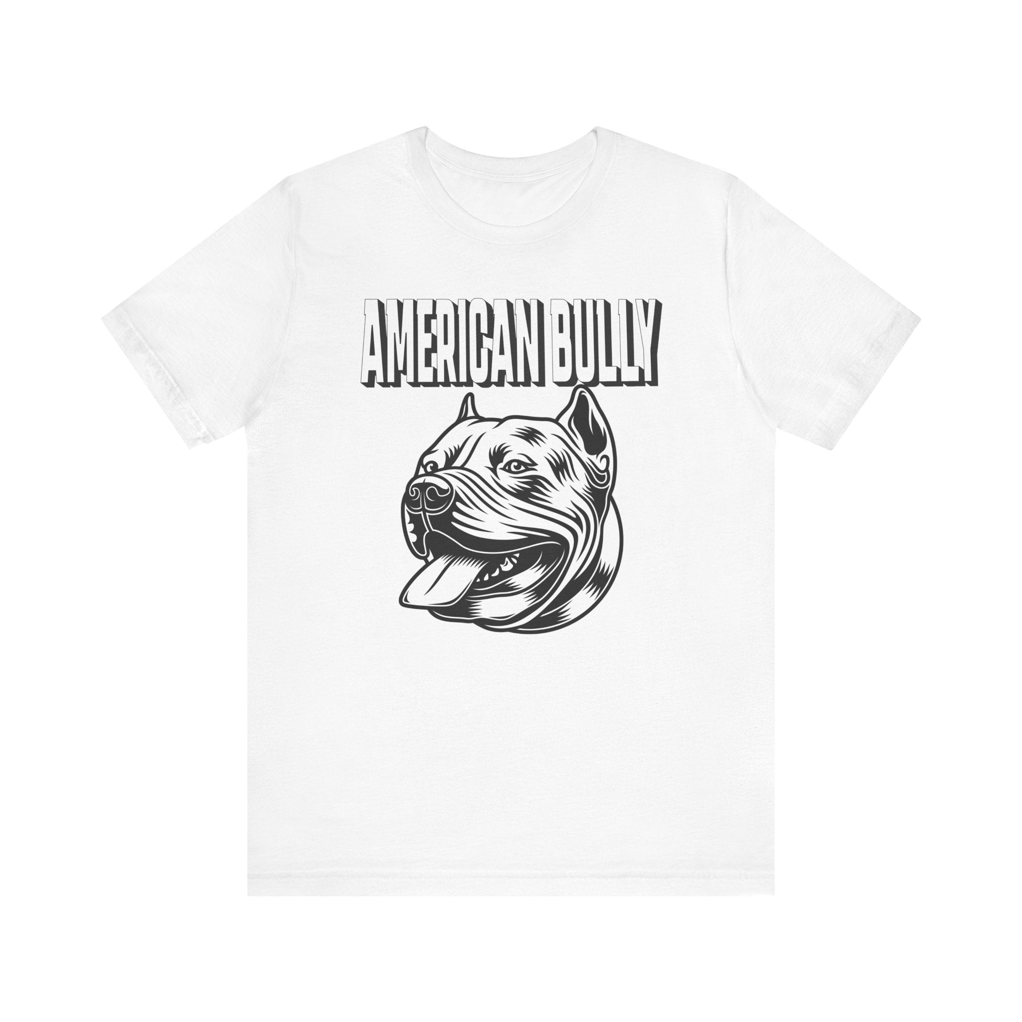 Make a statement with this bold line drawing of an American Bully head, paired with strong 'American Bully' lettering. Designed for direct-to-garment printing on a Bella Canvas unisex t-shirt, this graphic emphasizes crisp, impactful lines for a striking visual and a soft, comfortable wear. It's a confident and modern way to showcase your appreciation for the breed.