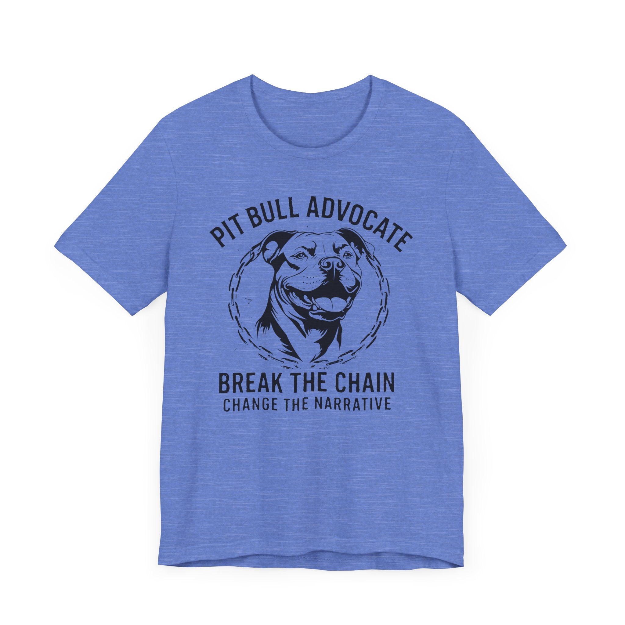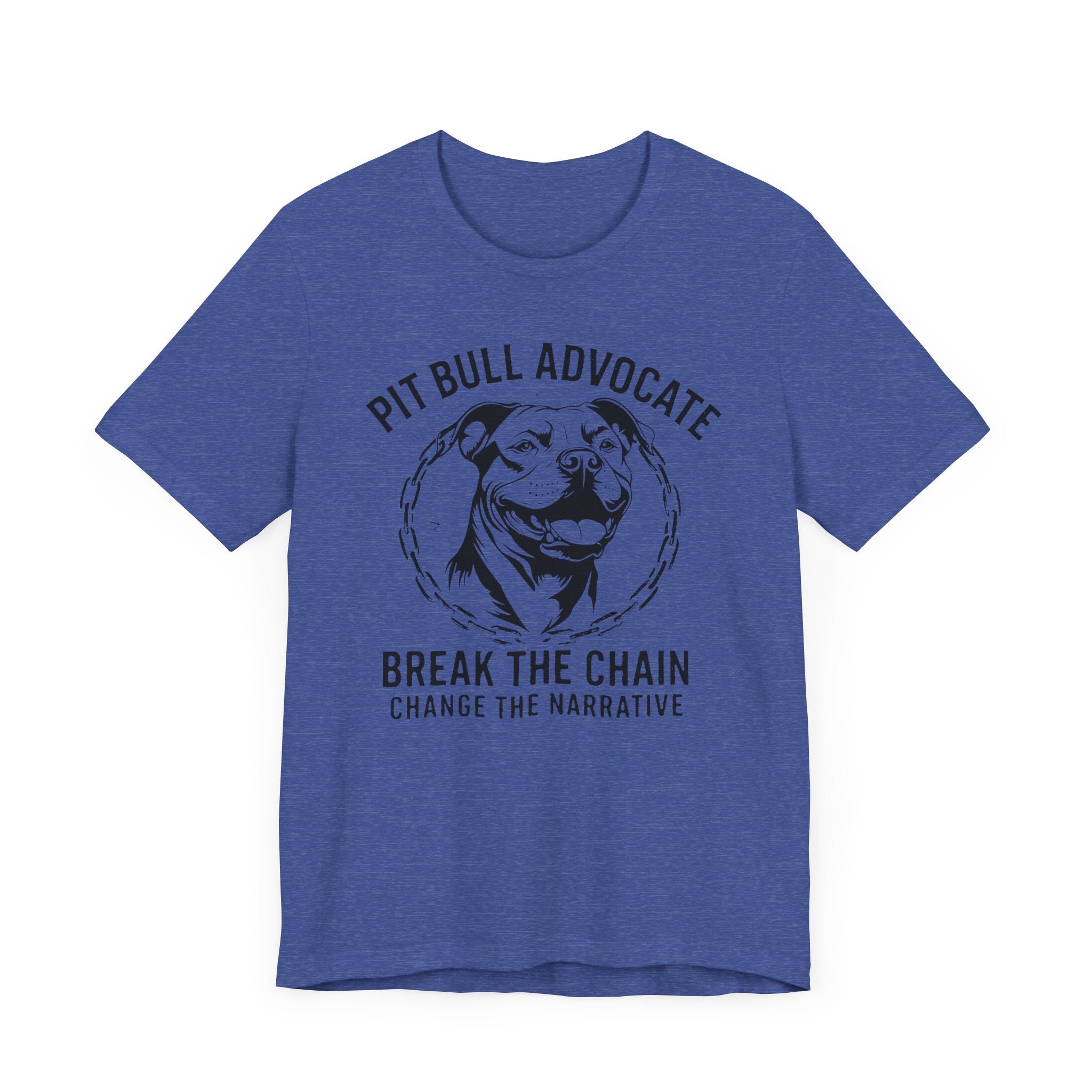 Unleash your passion for pit bulls with our "Pit Bull Advocate" tee! This powerful design features a striking pit bull head at the heart of a circle of broken chain, symbolizing freedom and a call to "Break The Chain, Change The Narrative." Printed with Direct to Garment technology on the ultra-soft Bella Canvas Unisex T-Shirt, this tee offers a comfortable, retail fit that's perfect for everyday wear. Show your support and help reshape perceptions with every wear.