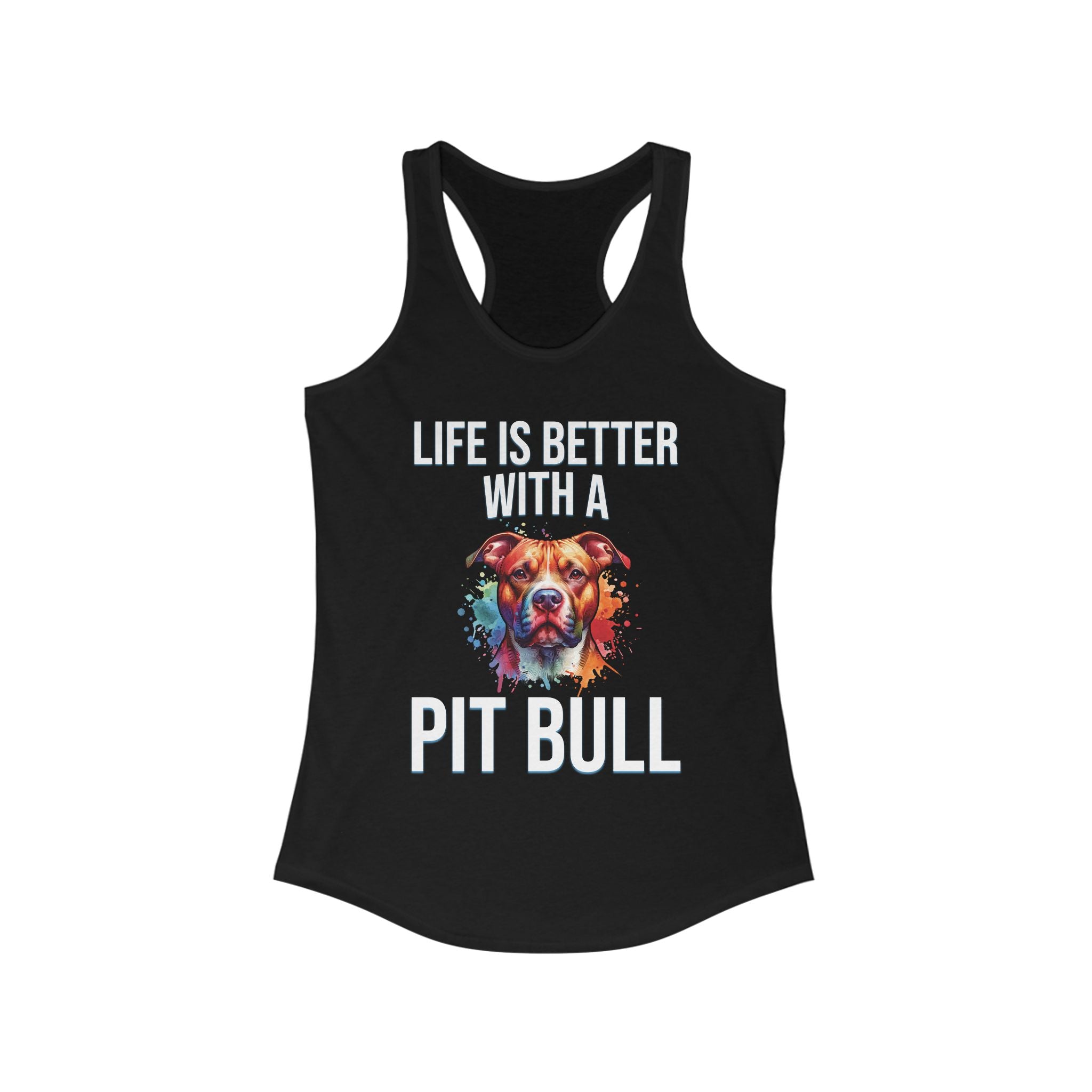 Show your love for this misunderstood breed with this vibrant tank! Featuring a playful illustrated Pit Bull and bold lettering, this eye-catching design is perfect for everyday wear.