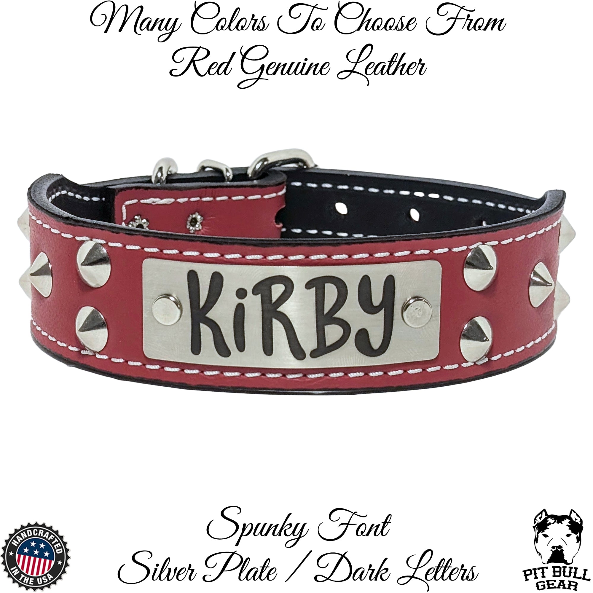La placa de identificación grabada a medida le permite agregar el nombre de su perro o información de contacto importante, lo que no solo lo hace elegante sino también funcional para mayor tranquilidad. Fabricado con herrajes resistentes y pernos colocados de manera segura, este collar está hecho para durar, ya sea para paseos diarios o salidas especiales.