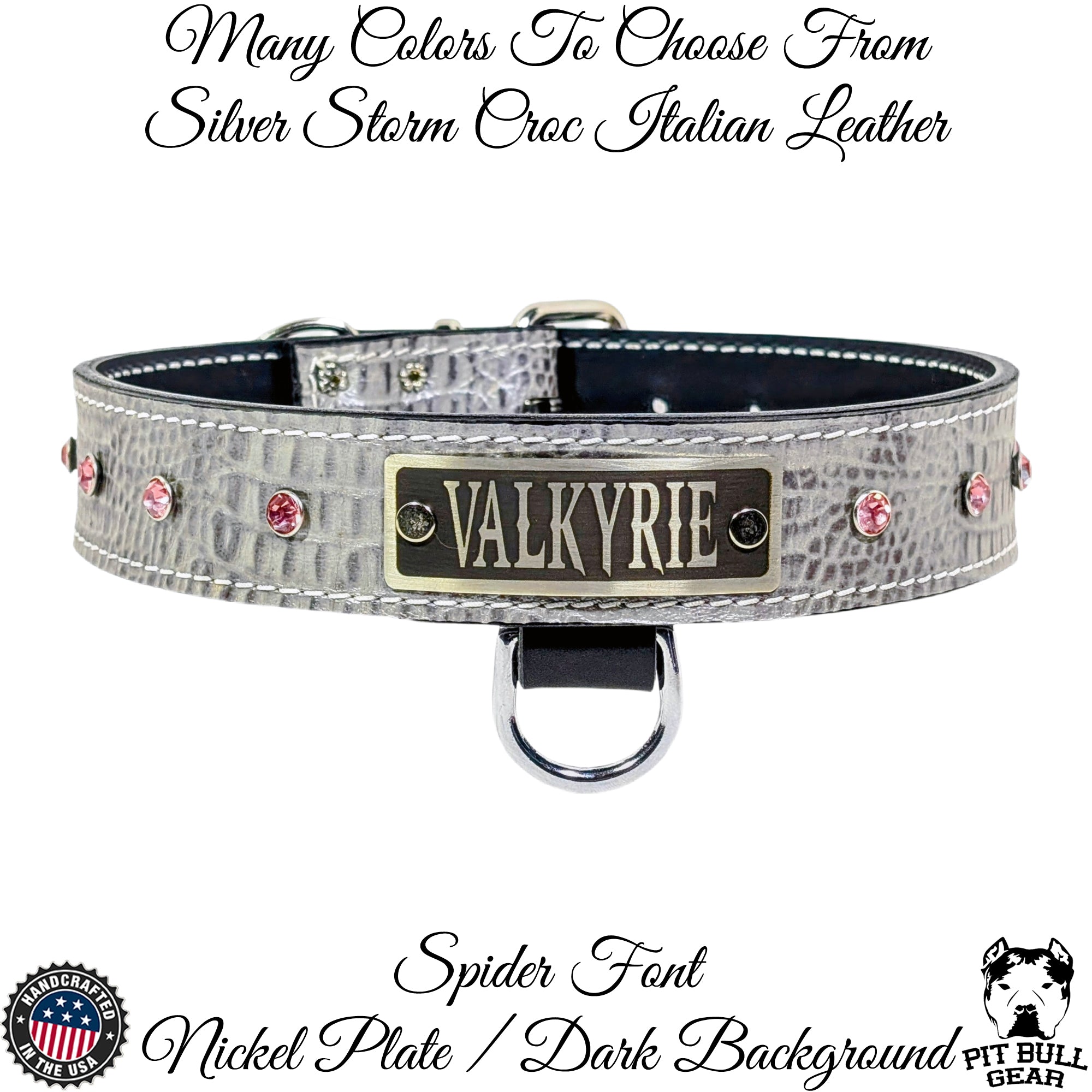 Collar de cuero personalizado para perro con gemas: 1,5" de ancho.