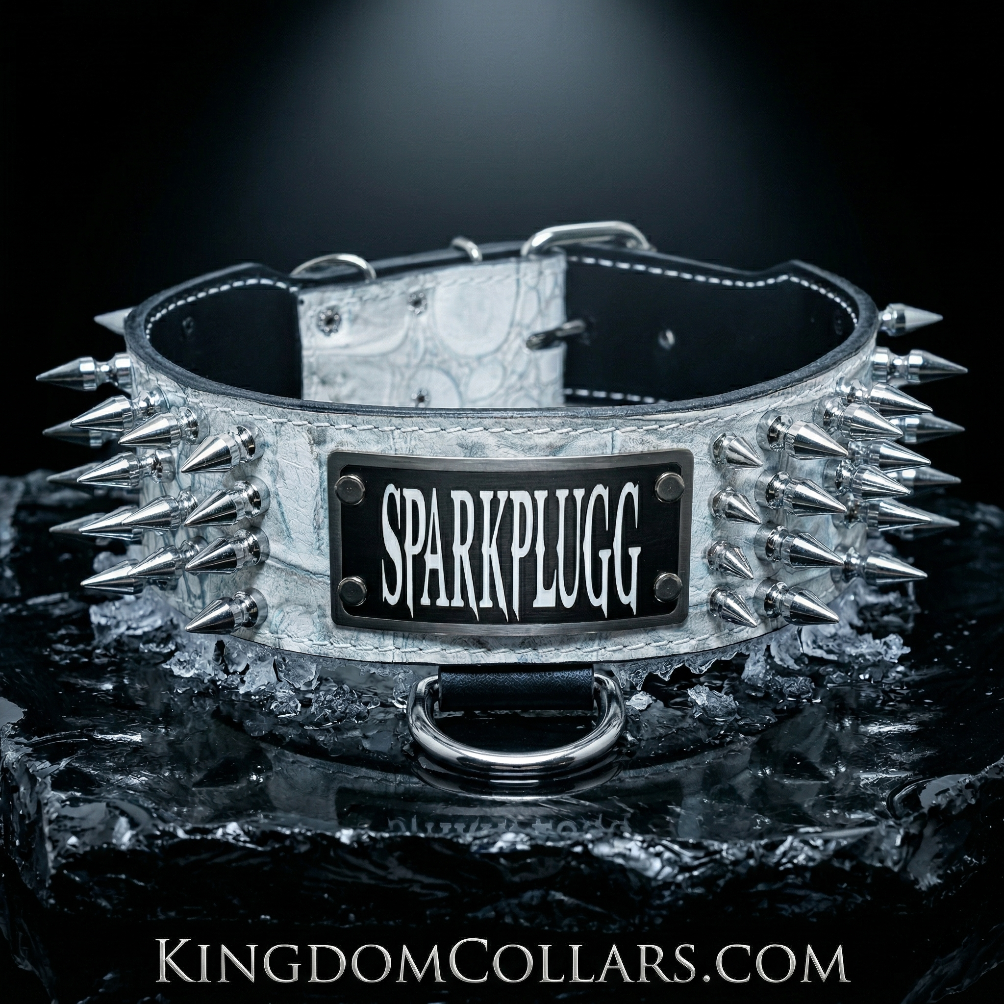 El collar cuenta con cuatro filas de púas de 1 pulgada colocadas meticulosamente, lo que le agrega un estilo audaz y distintivo al estilo de su compañero canino. Las púas están firmemente sujetas al cuero de alta calidad, lo que garantiza tanto estilo como seguridad para su amigo peludo.