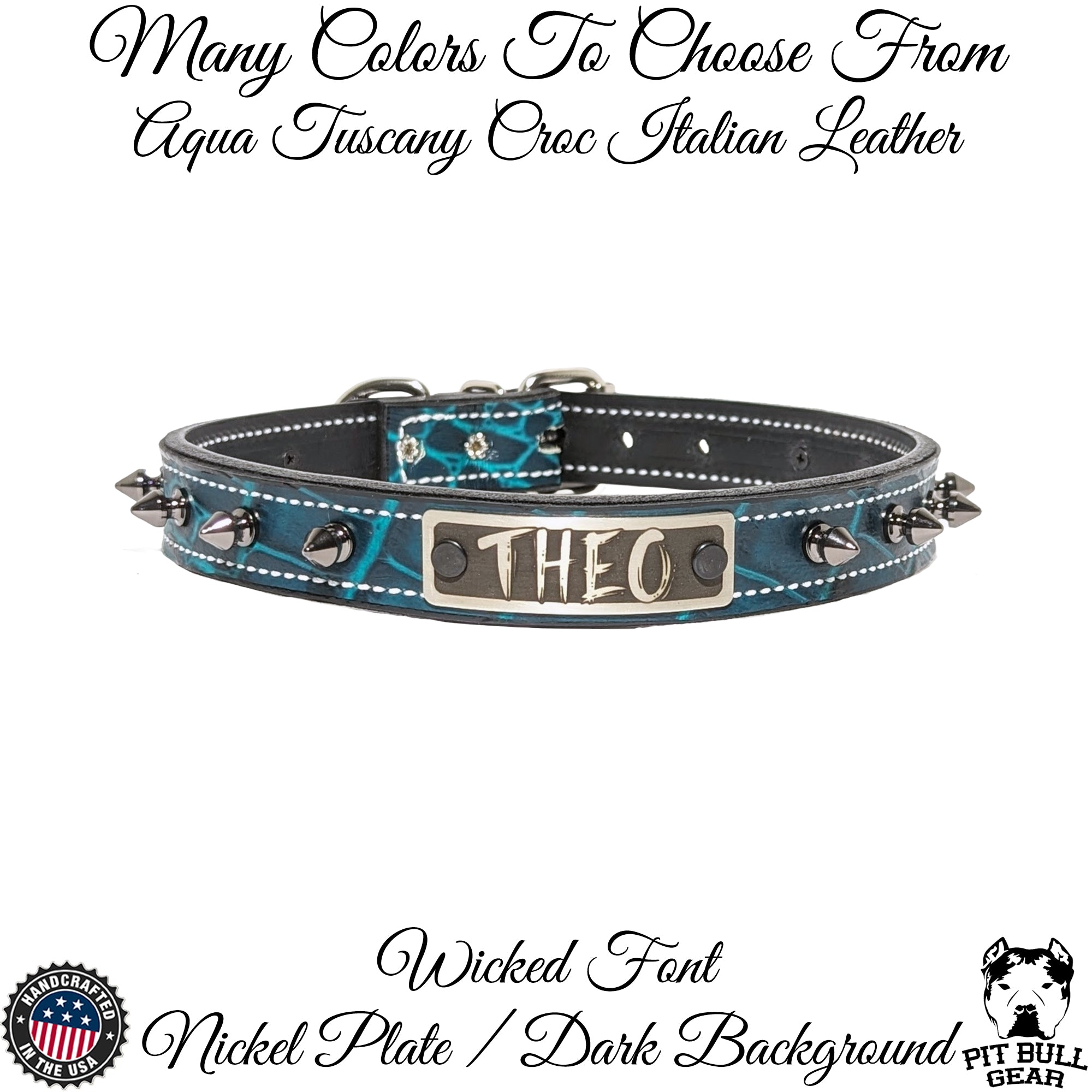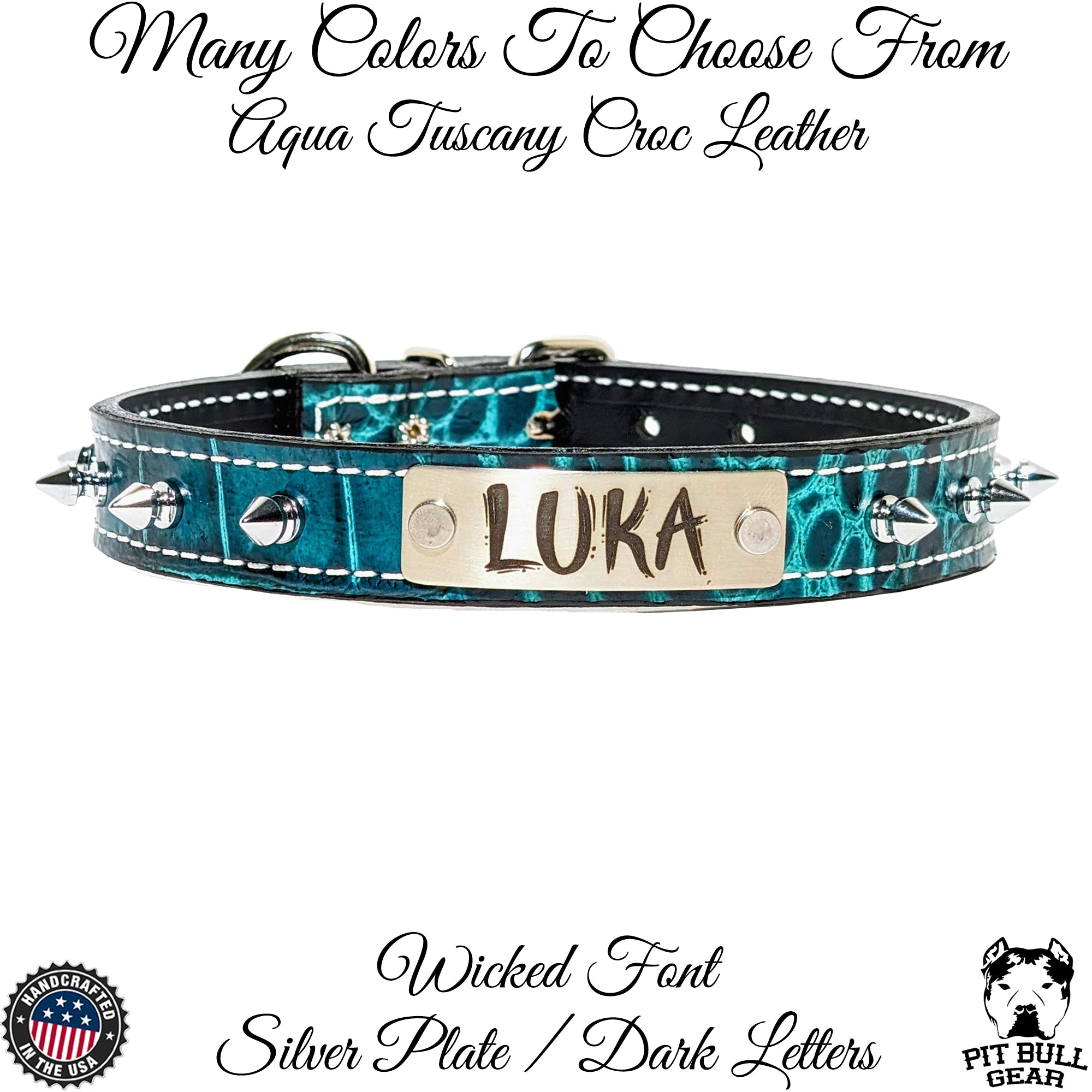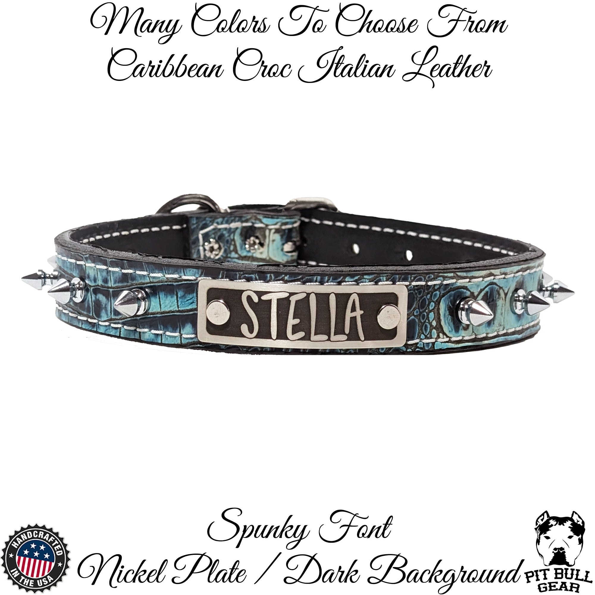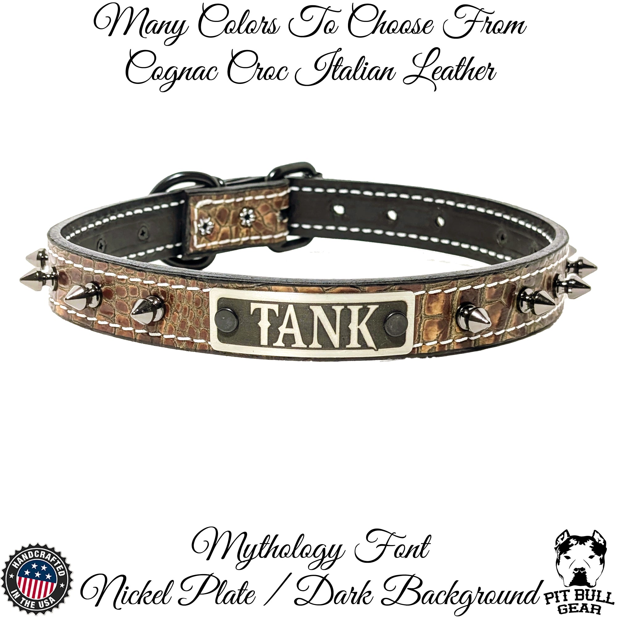 El collar incluye una placa con el nombre grabado a medida donde puedes personalizarlo con el nombre de tu perro o su información de contacto, lo que lo hace elegante y funcional. Con herrajes resistentes y confiables y una variedad de colores de cuero para que sea verdaderamente único, este collar de cuero con púas es una excelente manera de combinar estilo, seguridad y un toque personalizado.
