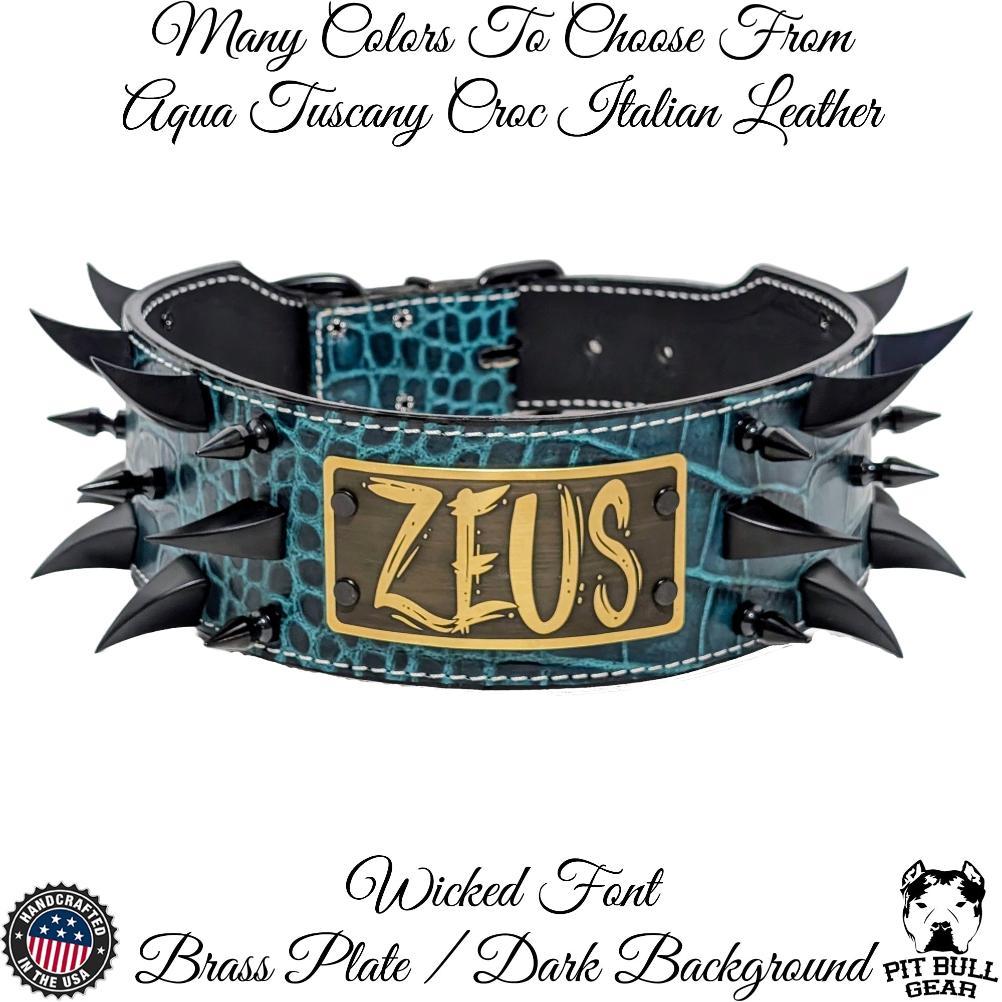 Este collar de cuero con púas de 3" de ancho hecho a medida para perros está diseñado para hacer una declaración audaz y, al mismo tiempo, ofrecer una calidad y una artesanía inigualables. Adornado con grandes púas de garra de dragón y púas de árbol de 1", este collar irradia una presencia feroz e imponente. Hecho a mano con cuero de primera calidad, combina durabilidad con una estética llamativa, lo que lo hace perfecto para razas más grandes o perros con un estilo vanguardista. Personalice el estilo con una placa de identificación grabada a medida, agregando un toque único a este poderoso accesorio. Ideal para dueños de mascotas que valoran tanto la función como el diseño inolvidable, este collar es tan resistente como elegante.