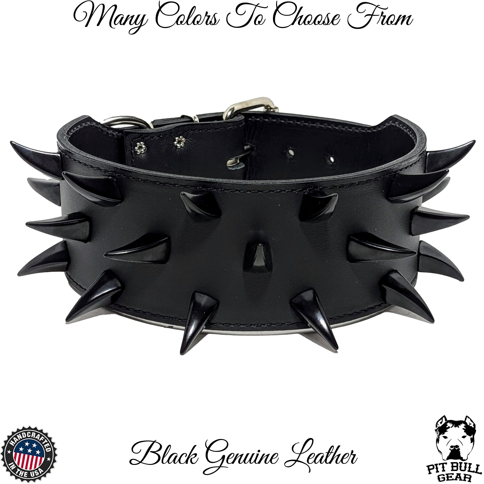 • X24 - Collar de cuero para perros de 3" de ancho con púas en forma de garra de dragón
