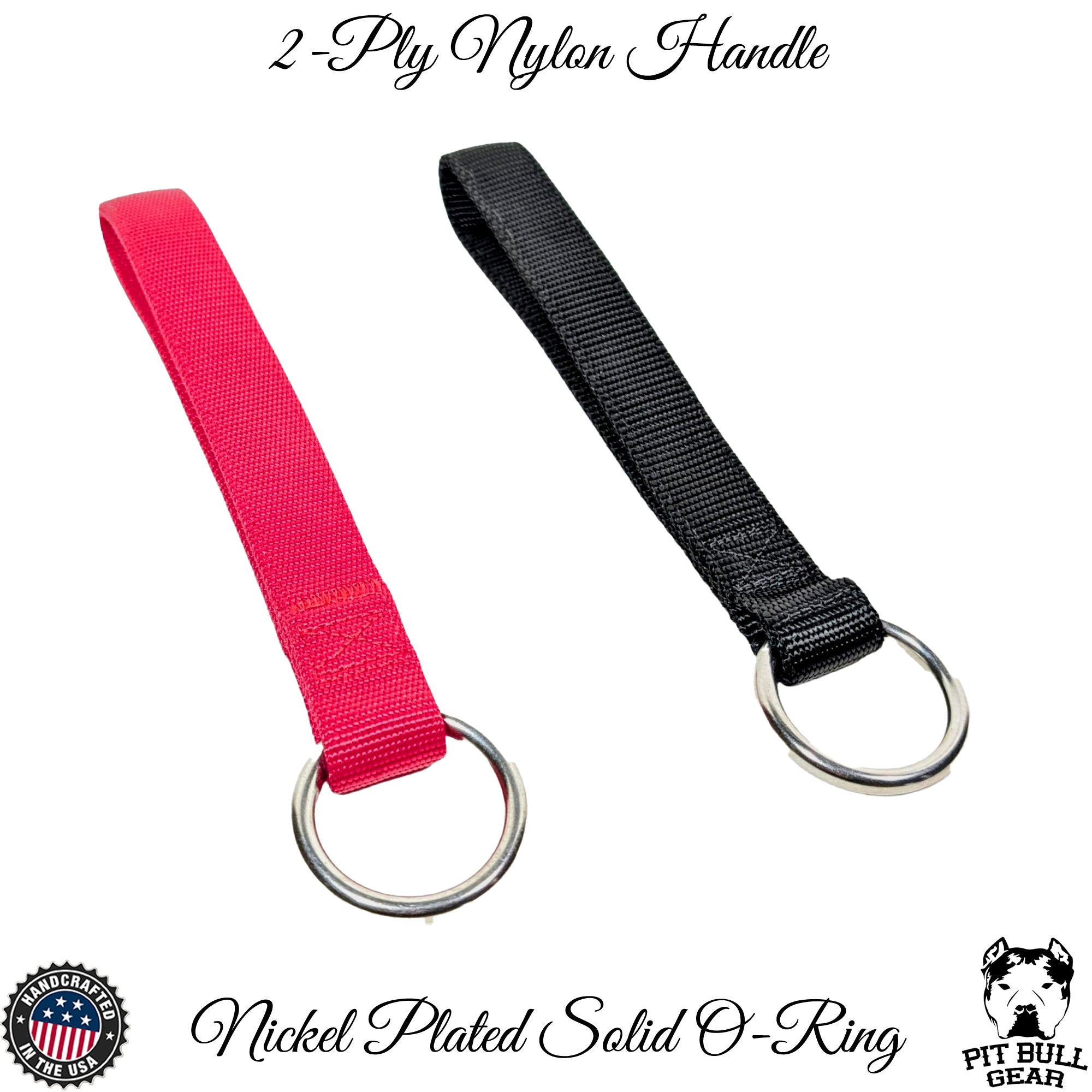 Crea tu propia correa con este mango de nailon de 2 capas con junta tórica de níquel cosida. Longitud total de 25 cm. El mango mide 20 cm de largo y 2,5 cm de ancho. Disponible en negro o rojo.