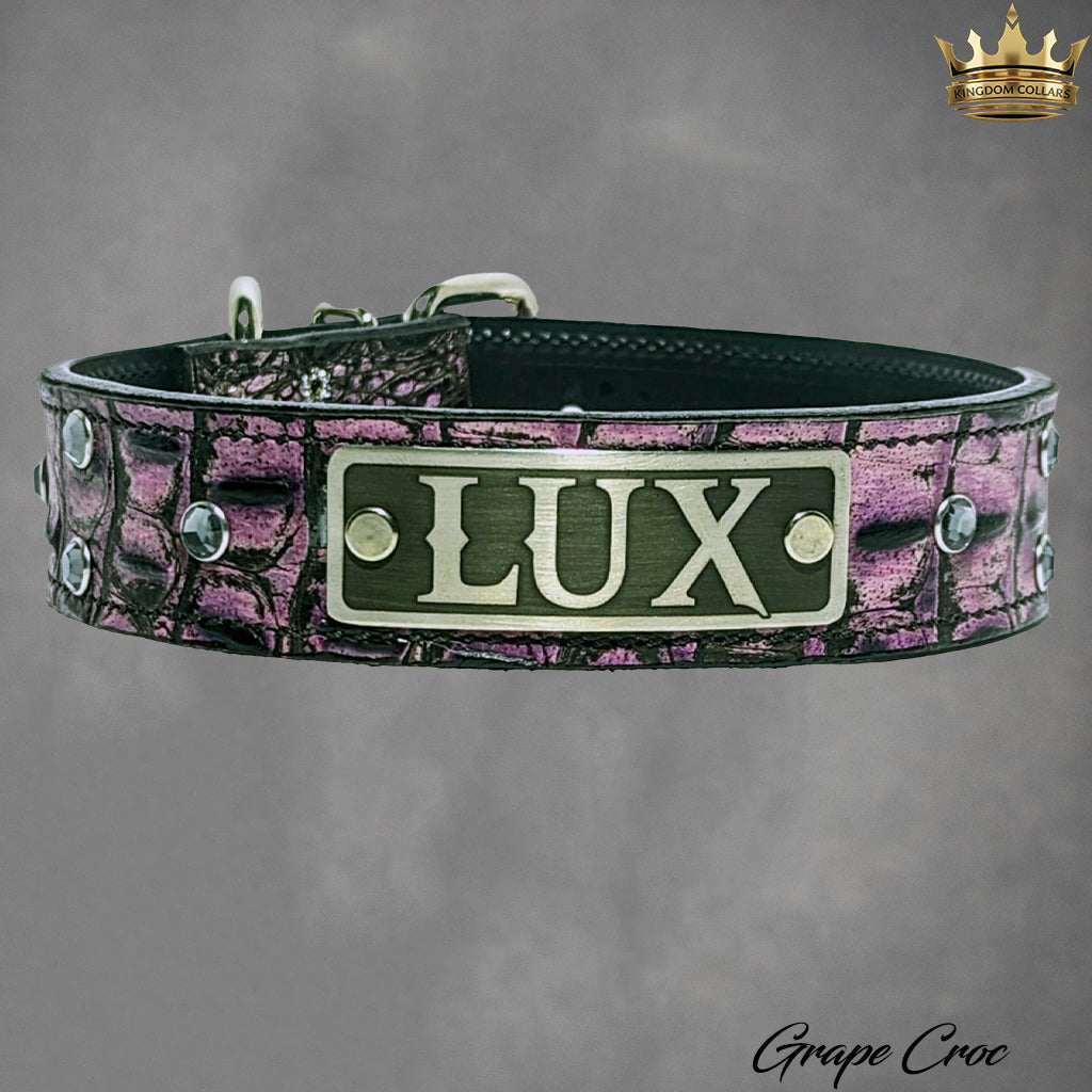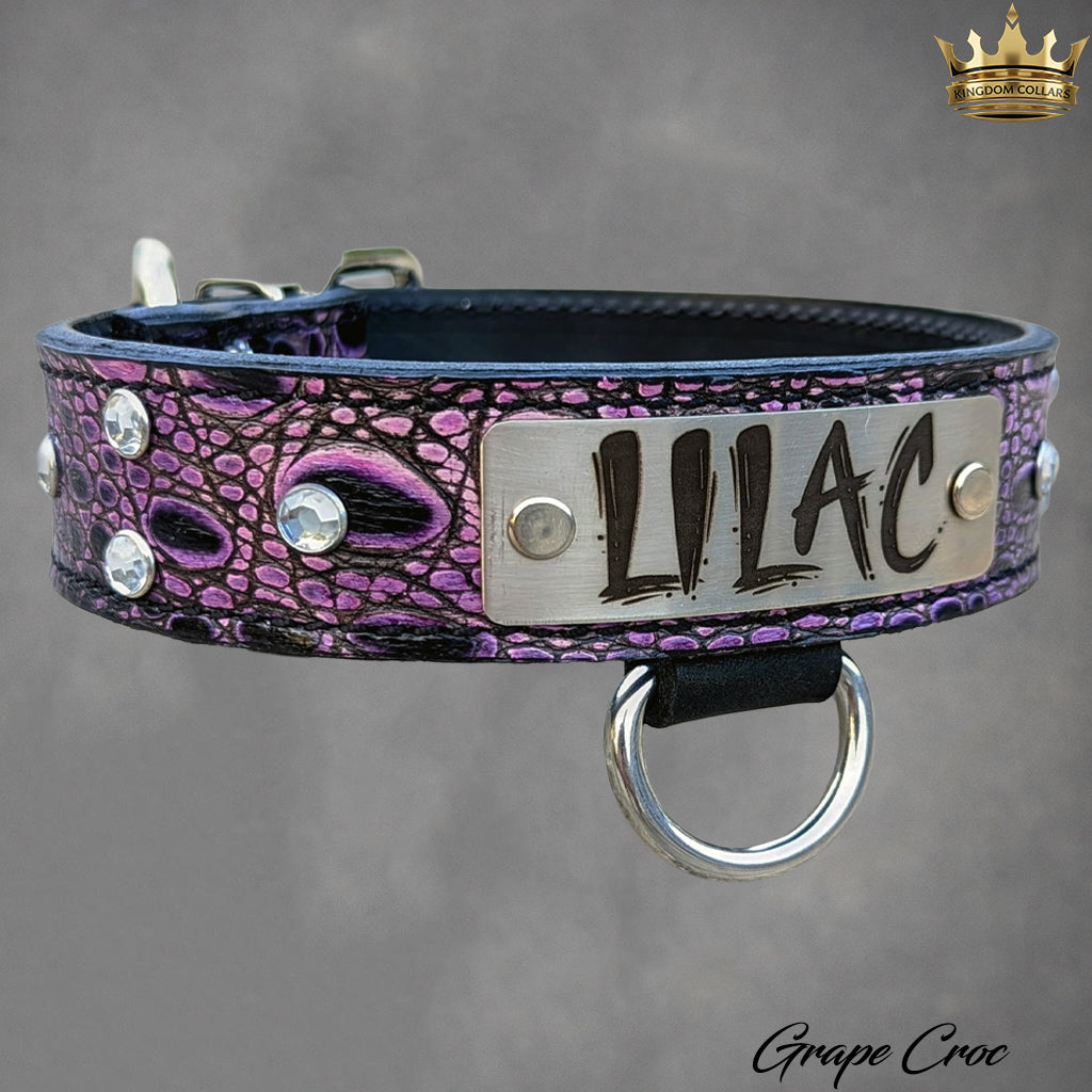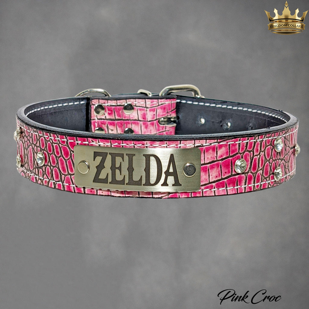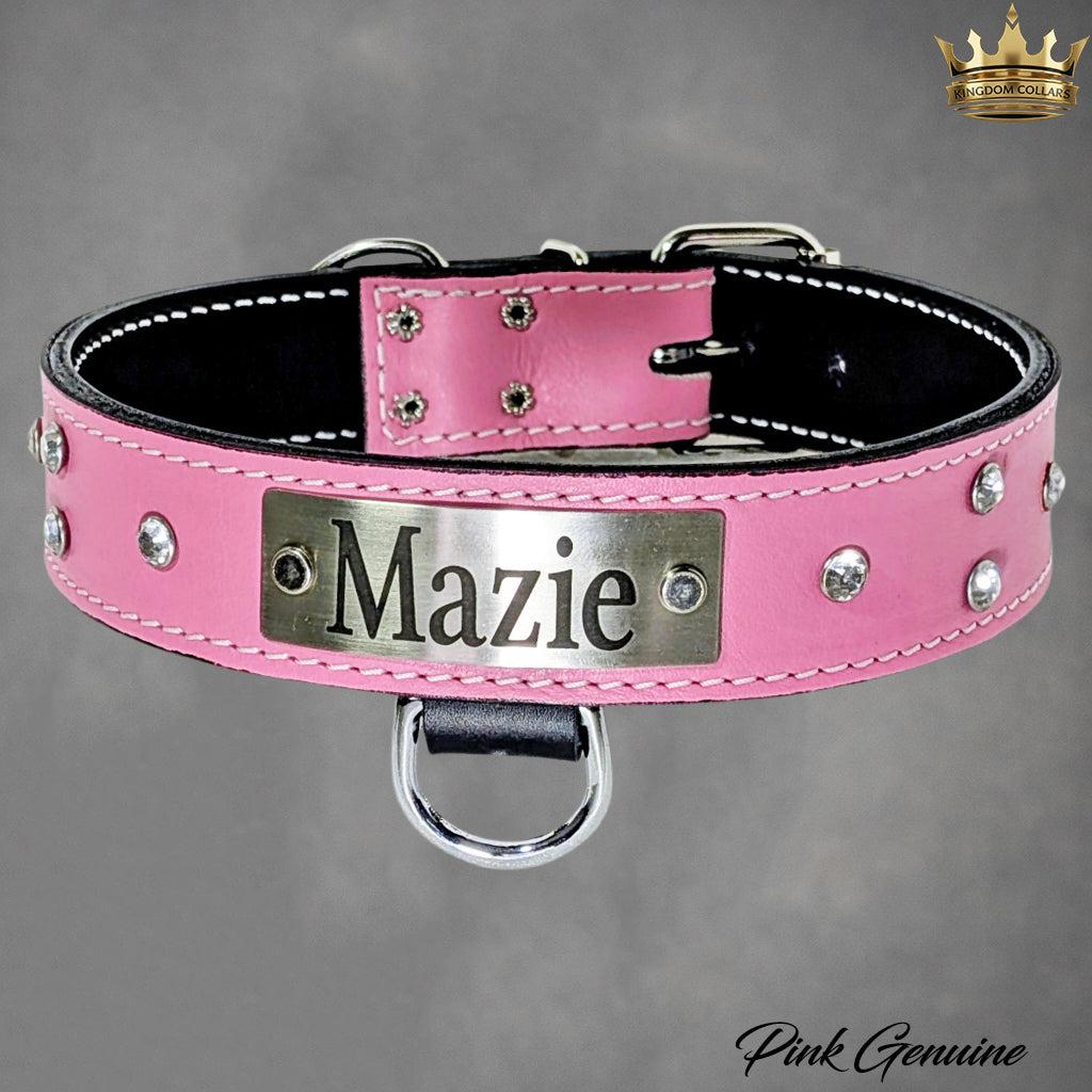 Coleira de couro personalizada com pedras preciosas - 1 1/2" de largura.