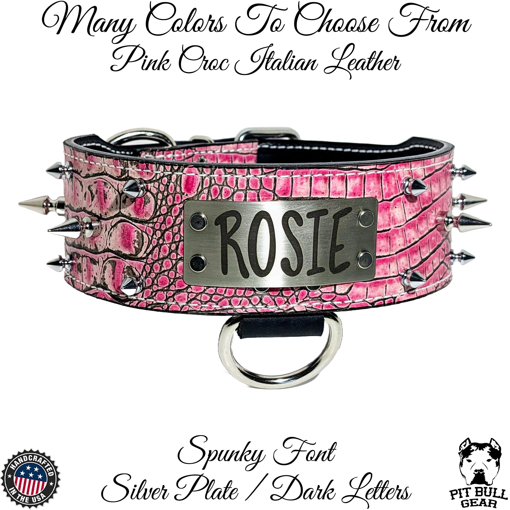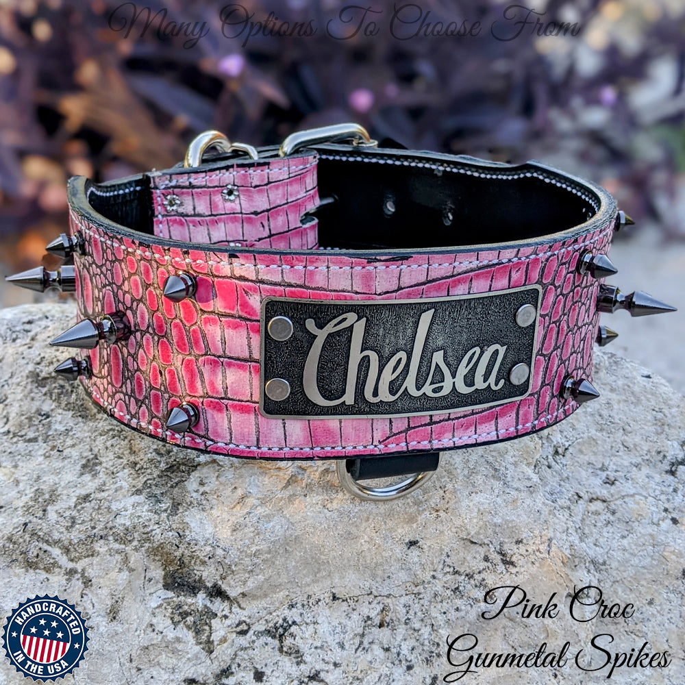 Coleira de couro personalizada com pontas - 2 1/2" de largura.
