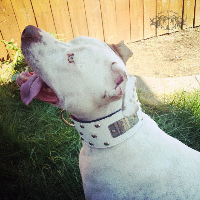 Coleira de cachorro de couro personalizada com pinos de cúpula - 3" de largura.