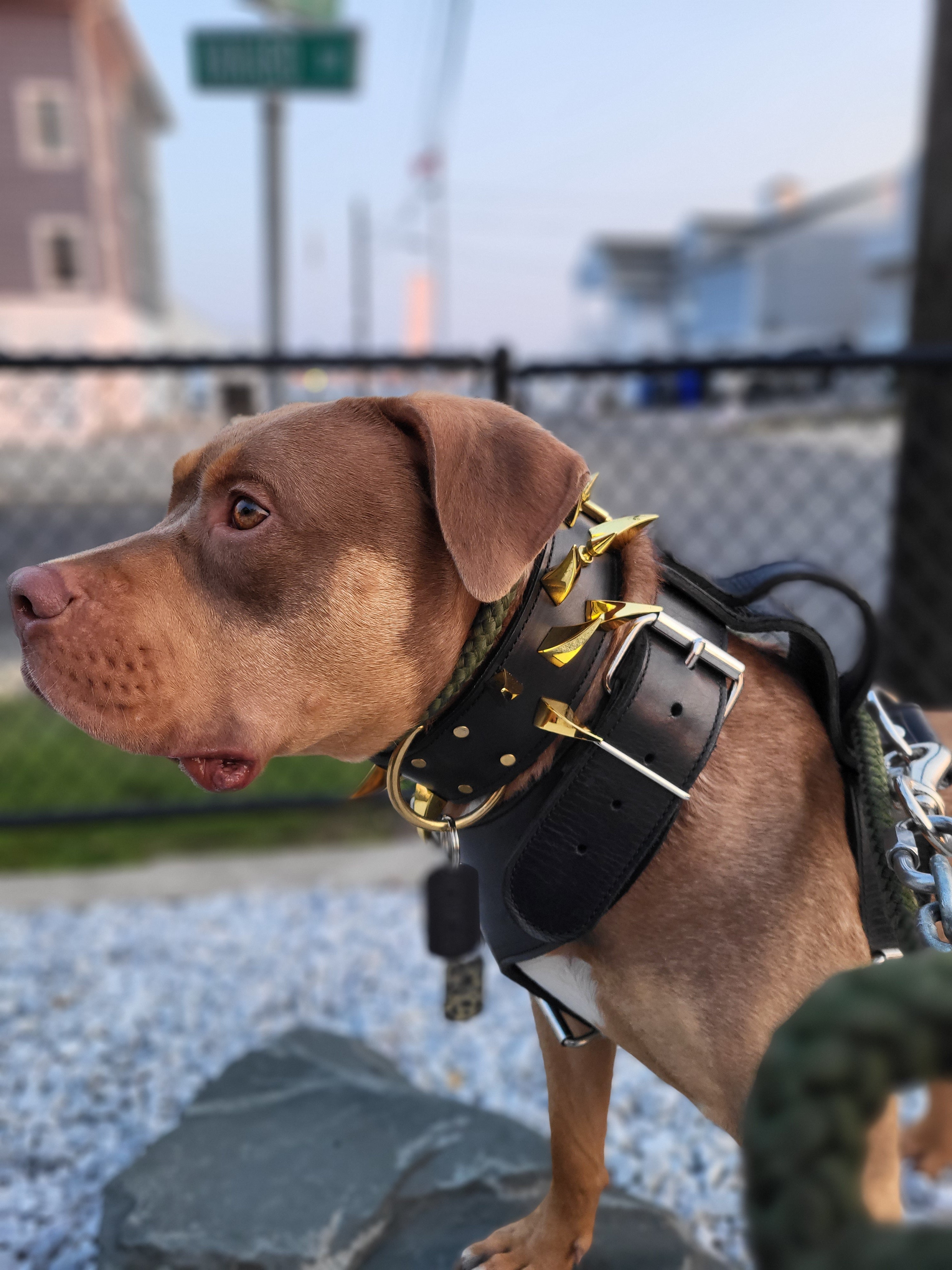 Coleira para cães de couro com pontas de dragão de 2 pol. Cravada com grandes garras de dragão e pontas de árvore de 1 pol. Esta gola é feita com materiais premium. Começando com 9-10 onças. Couro de flor integral preto como base. Sua escolha de couro de crocodilo italiano, couro de camurça premium ou couro genuíno é colado e costurado com fio de náilon no couro de freio. Tornando-a uma coleira de couro grossa e forte feita para durar. As bordas são suavizadas e com bordas pretas. Esta gola tem uma fivela de 2", com um laço de alça de 2" e anel D soldado de 2" (com anel D central opcional). Cada colar é feito sob encomenda e fabricado nos EUA.