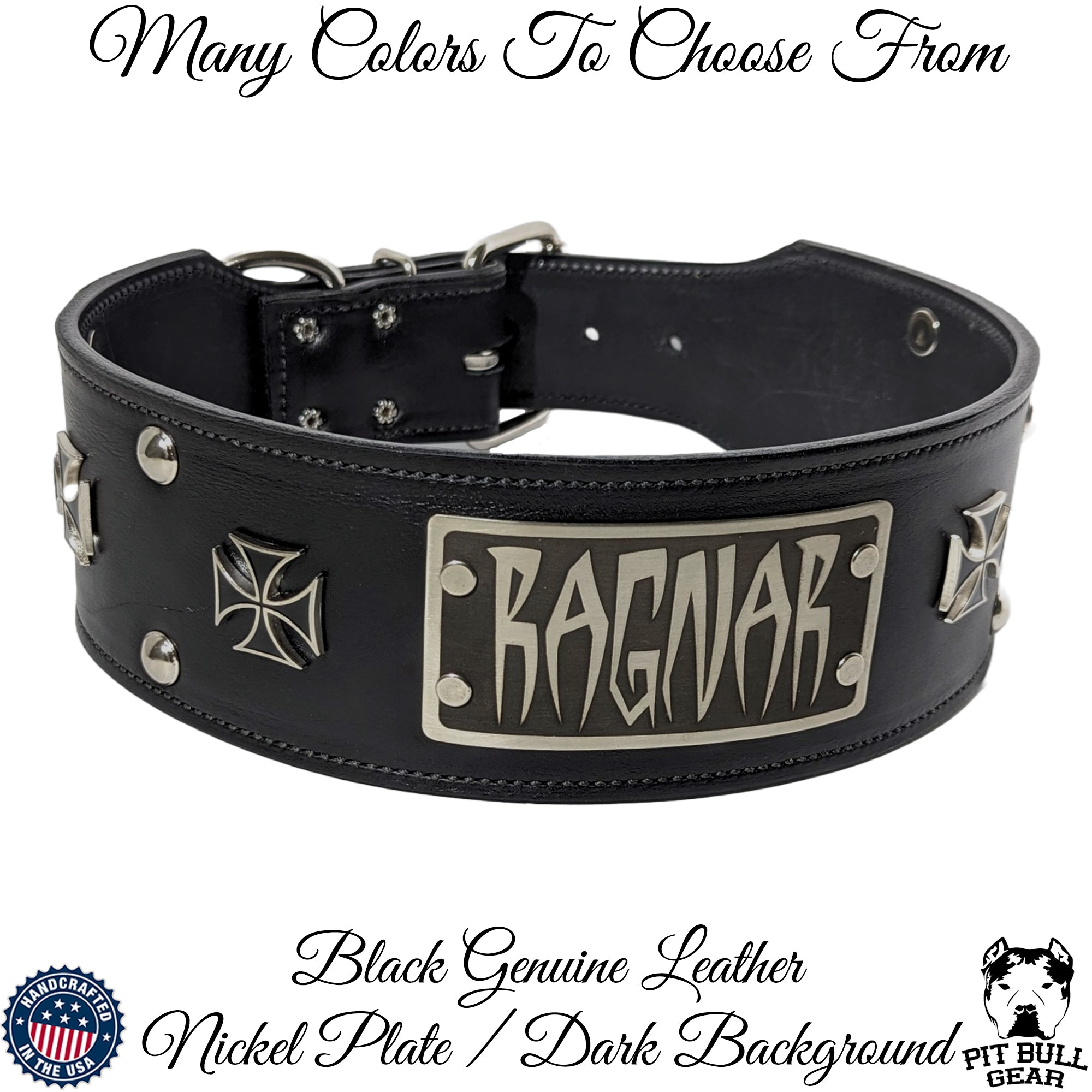 Coleira de couro personalizada com cruzes maltesas - 3" de largura.